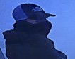The suspect is a white male of average build. He usually wears a white and black ball cap, black face covering, black jacket, white shoes, and carries a black backpack with white stripes.