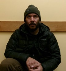He is described as male, Indigenous, approximately 5’8”, slim build, with short black hair, a full beard, and brown eyes.